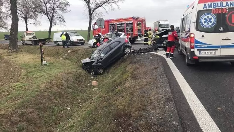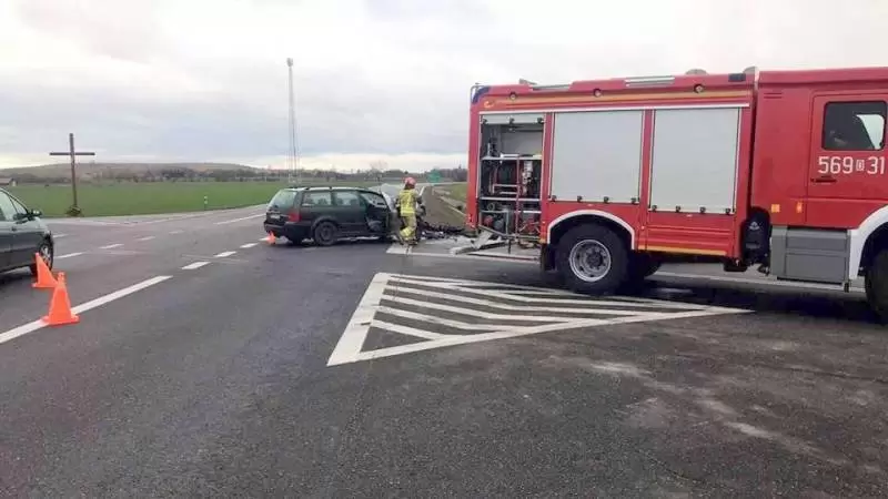 Dziś po południu, na drodze krajowej nr 5 w okolicach miejscowości Gościsław, doszło do zderzenia dwóch samochodów osobowych.