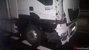 Pas w kierunku Legnicy był całkowicie zablokowany na skutek zderzenia się samochodu osobowego marki Opel Vivaro oraz dwóch samochodów ciężarowych marki Iveco oraz Volvo. Łącznie samochodami podróżowało 7 osób, wszyscy opuścili pojazdy o własnych siłach. Wskutek wypadku poszkodowani zostali dwaj mężczyźni w wieku 21 oraz 55 lat.