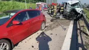 Wskutek zderzenia poszkodowane zostały trzy osoby, jedna z nich była zakleszczona w busie marki Volkswagen. Na miejscu działania prowadziła straż pożarna, policja oraz pogotowie ratunkowe.