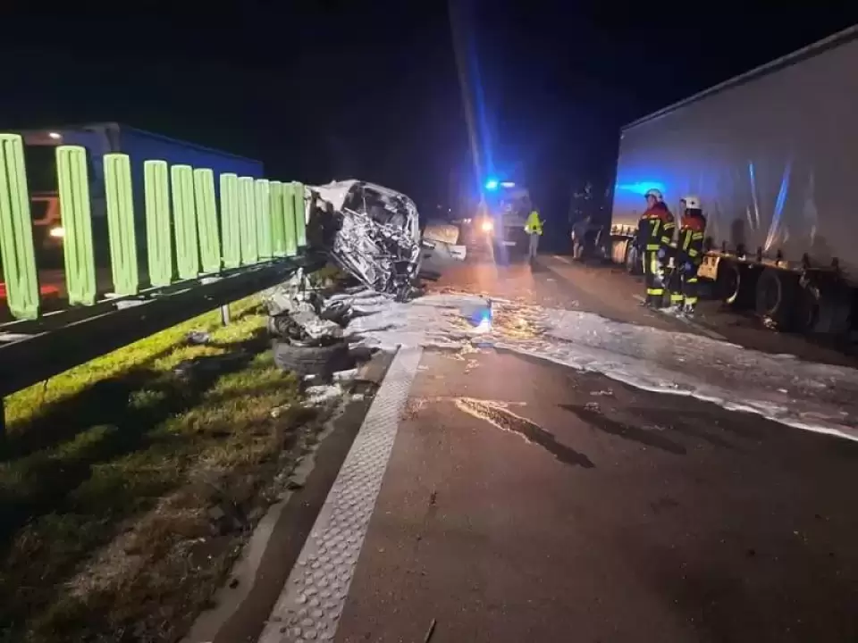 13.09.2021 r. – na 115km Autostrady A4 w stronę Wrocławia doszło do kolizji samochodu osobowego z samochodem ciężarowym, na skutek zdarzenia kierowca samochodu osobowego został poszkodowany, działania polegały na zabezpieczeniu miejsca zdarzenia udzieleniu KPP poszkodowanemu oraz ze względu na wydobywający się dym pokrył pianą ciężką komorę silnika uszkodzonego pojazdu osobowego.
