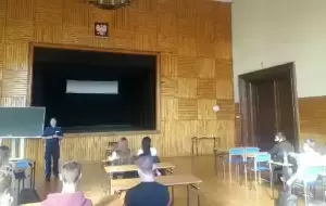Mając na uwadze, że uczestnikami spotkania byli uczniowie pełnoletni, jak i tacy, co skończyli 17-ty rok życia, mówiono kwestię odpowiedzialności karnej za popełniane przestępstwa i wykroczenia. Przybliżono obowiązujące w tej materii procedury oraz wyjaśniono podejmowane przez funkcjonariuszy czynności.