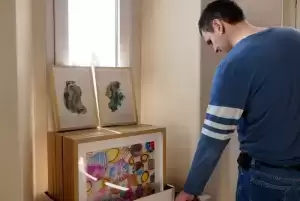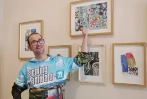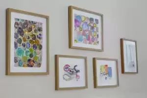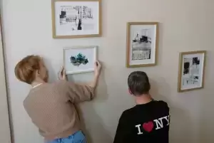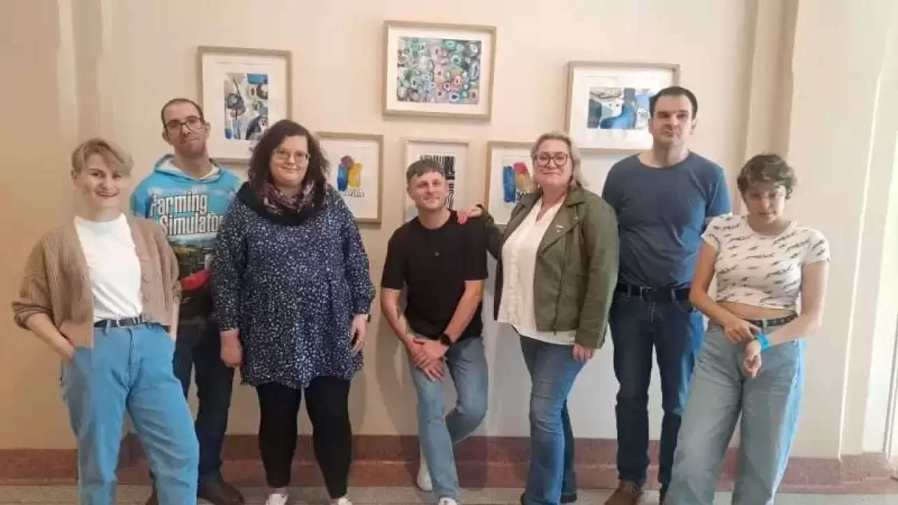 Prace uczestników Warsztatu Terapii Zajęciowej Stowarzyszenia „Ostoja” w Środzie Śląskiej ozdobiły korytarze starostwa zamieniając je w galerię sztuki.