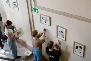 Rysunki powstawały przez kilka zimowych miesięcy pod okiem Małgorzaty Dybowskiej, jako forma aktywizacji społecznej. Na początku kwietnia zamontowano je ścianach starostwa.