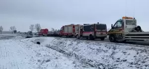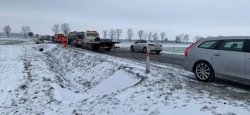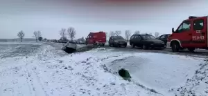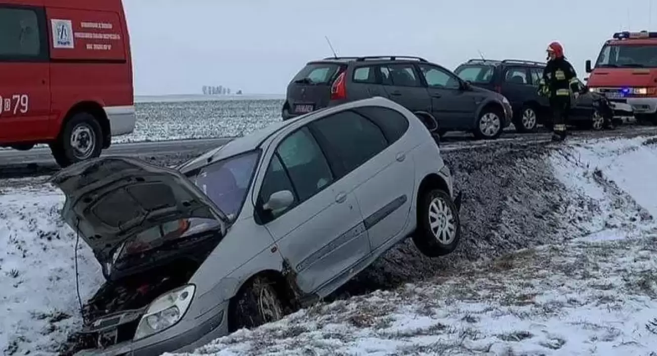 Dziś w związku z oblodzeniem dróg, przypominamy o zasadzie "śpiesz się powoli". Na drodze krajowej nr 5, podczas manewru wyprzedzania doszło do zderzenia 4 pojazdów.