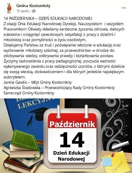O dniu tak ważnym dla nauczycieli i wszystkich pracowników oświaty nie zapomnieli także samorządowcy, politycy i pracodawcy, którzy poprzez media społecznościowe złożyli im najserdeczniejsze życzenia.