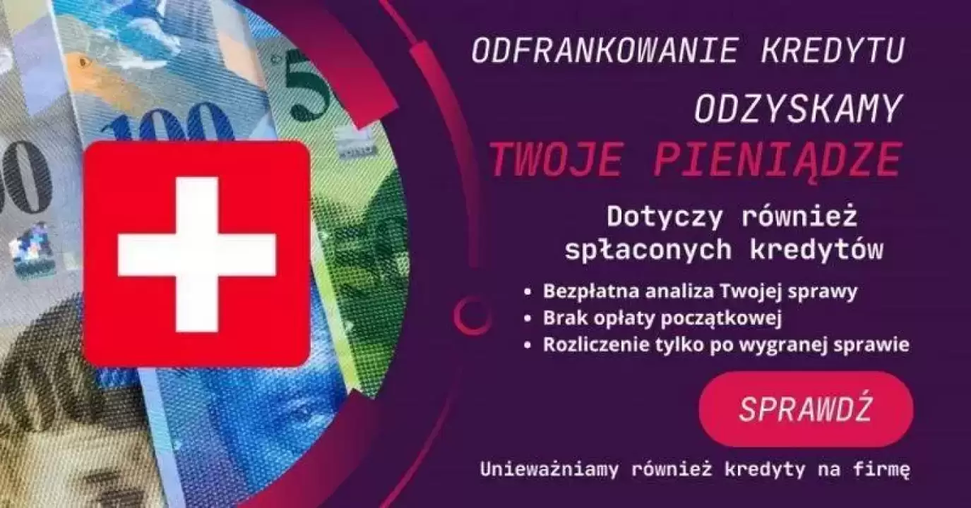 Wypełnij formularz i bezpłatnie sprawdź czy możesz pozbyć się kredytu frankowego CHF i odzyskać nadpłacone lub spłacone raty. Skorzystaj z opcji przesyłania umów bankowych do weryfikacji https://www.protekcjaodszkodowania.pl/formularz-zgloszeniowy. Tel. kontaktowy 883 460 980.