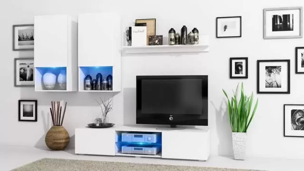 Współczesne wersje meblościanek nie są już tak masywne i toporne jak te produkowane za czasów Gierka. Na rynku znajdziemy zarówno pojemne meblościanki z szafą i komodą RTV, jak i małe kompaktowe bryły, które sprawiają wrażenie lekkich i nie zajmują wiele miejsca w mieszkaniu. Przykładem może być model LOFT w kolorze białym, wyposażony w oświetlenie ledowe.