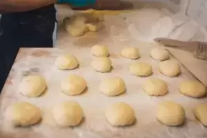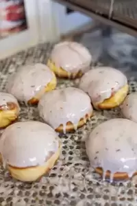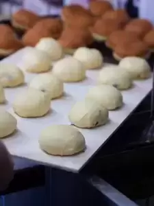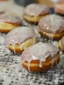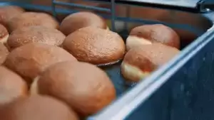 Podstawą jest ciasto, a tajemnica tkwi w proporcji składników, które łączą się w jednolitą i zbitą masę. Dalej ciasto dzieli się na tzw. presy, odważone kawałki, które nadziewane są marmoladą. Uformowane pączki trafiają do garownika, gdzie nabierają objętości. Z garownika trafiają do smażenia, następnie lądują w pomadzie, a stamtąd już prosto do sprzedaży na półki Pączkowni i wasze rodzinne stoły.