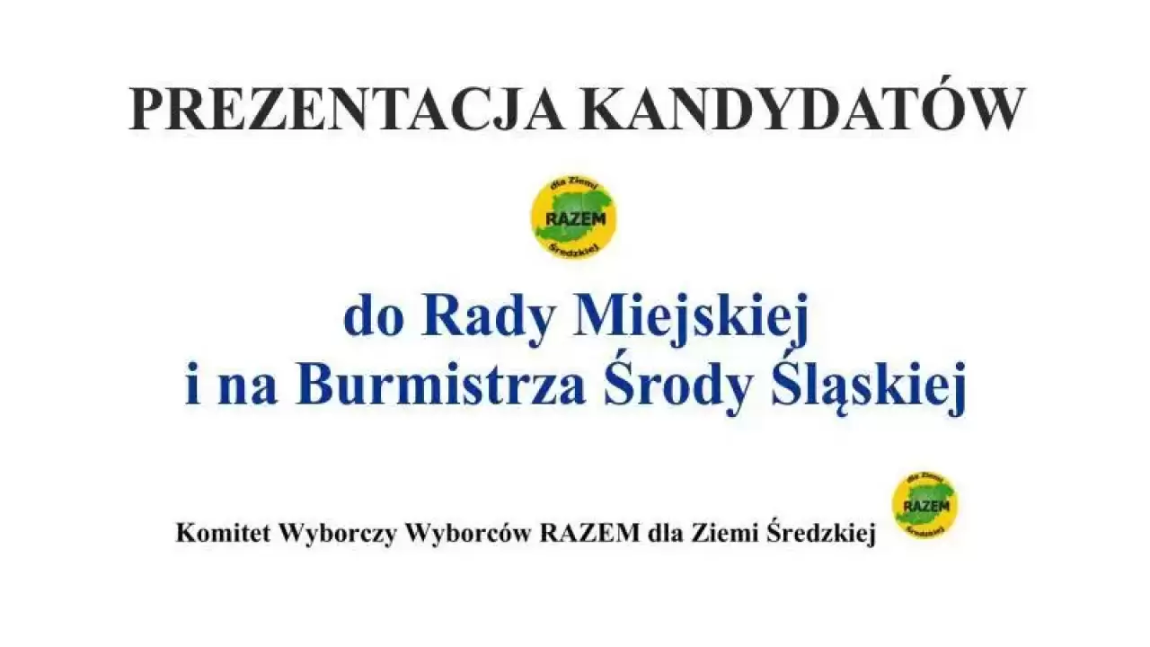 Komitet Wyborczy Wyborców RAZEM dla Ziemi Średzkiej zaprasza na prezentację online kandydatów do Rady Miejskiej i na Burmistrza Środy Śląskiej.