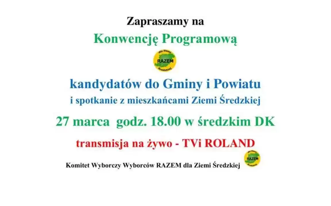 Zaproszenie na Konwencję Programową kandydatów na Burmistrza Środy Śląskiej i do Rady Miejskiej oraz Rady Powiatu