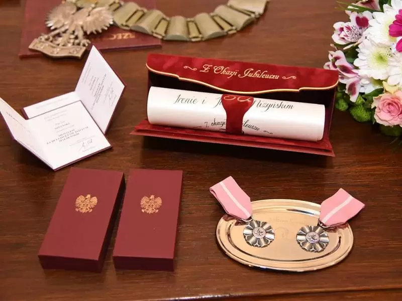 Małżonkom wręczono odznaczenia od prezydenta RP, pamiątkowe dyplomy, upominki oraz kwiaty. Nie zabrakło również symbolicznego toastu.