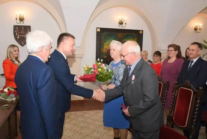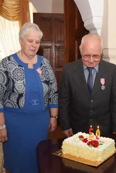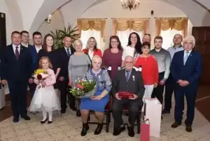W jubileuszu uczestniczyli najbliżsi małżonków oraz burmistrz Środy Śląskiej Adam Ruciński i przewodniczący Rady Miejskiej w Środzie Śląskiej Jerzy Kryciński, którzy wręczyli jubilatom list gratulacyjny od prezydenta RP i medale za długoletnie pożycie małżeńskie.