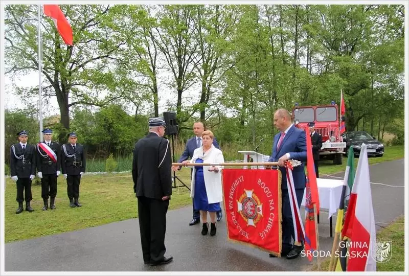 Podniosły charakter jubileuszu zapewnił akompaniament orkiestry straży pożarnej z Miłkowic, poczty sztandarowe oraz strażacy, którzy po liturgii w uroczystym przemarszu poprowadzili zaproszonych gości na apel. Tam przy dźwiękach Mazurka Dąbrowskiego druhowie Dariusz Lewandowski, Michał Hołownia oraz Marcin Kasprzyk na maszt wciągnęli flagę Polski.