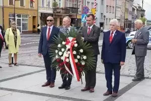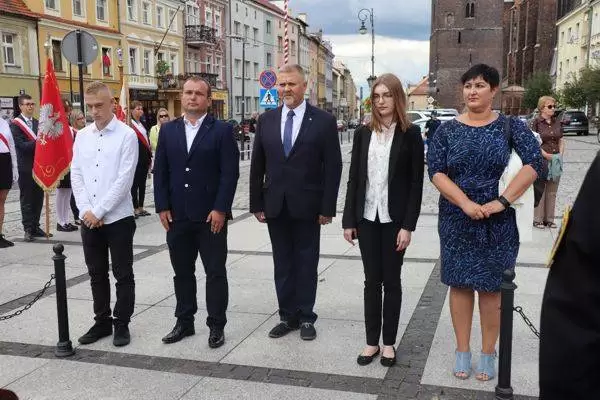 Sekretarz Gminy Marcin Nowakowski wraz z przewodniczącym Rady Miejskiej Jerzym Kycińskim uczestniczyli z ramienia Gminy w powiatowych obchodach 83. rocznicy wybuchu II wojny światowej na Rynku Dolnym.