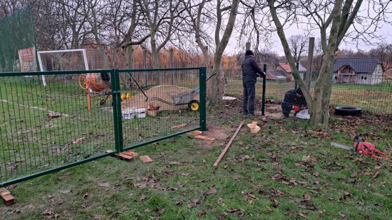 - kolejny etap montażu ogrodzenia boiska w Ogrodnicy