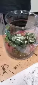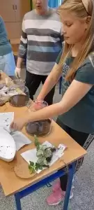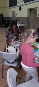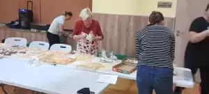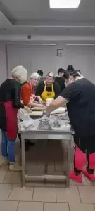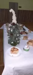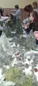 Równolegle odbywały się warsztaty dla chętnych dorosłych. Pod okiem fachowca robiliśmy las w słoiku, pletliśmy makramy, piekliśmy ciastka oraz przygotowywaliśmy piękne, świąteczne stroiki – choinki. Niektóre wykonane prace wystawialiśmy na licytacje, a dochód z nich przeznaczaliśmy na pomoc dla chorego, małego mieszkańca naszej wsi. Piękne słoiki lub pyszne słodkości darowaliśmy osobom samotnym lub starszym. Uśmiech na ich twarzach był niezapomniany i bezcenny.