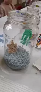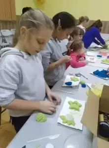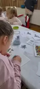 Chętne dzieci uczestniczyły w swoich zajęciach. Podczas 4 warsztatów rozwijały kreatywność przy wykonywaniu układanki koralikami Hama, tworzeniu pomysłowych breloczków, świeczników z masy solnej czy ozdób choinkowych. Młodzi mieszkańcy byli zachwyceni, zaangażowani i pełni pomysłów.