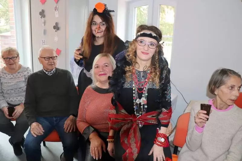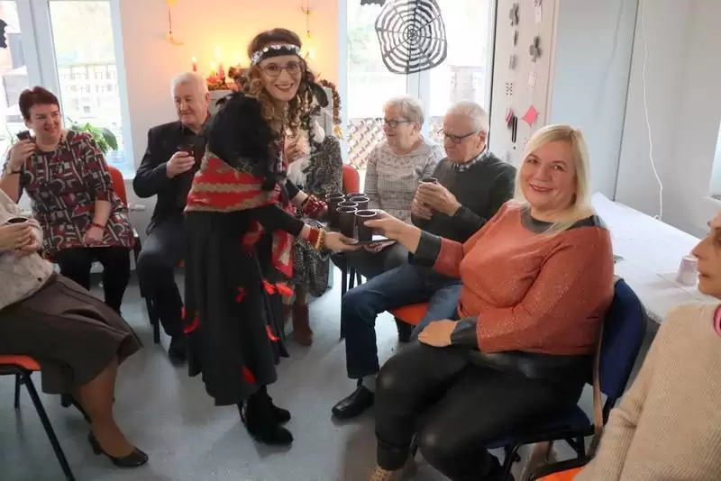 Pracownice Dziennego Domu Seniora na czele z kierownik Justyną Hołyst w andrzejkowych przebraniach prowadziły zabawy dla seniorów, których celem było poznanie wróżb na przyszłość. Podopieczni DSS mocno zaangażowali się w zabawę i z humorem przystępowali do poszczególnych zabaw.