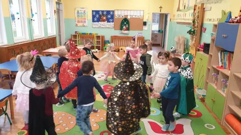 Przedszkolaki próbowały dowiedzieć się czegoś więcej o swojej przyszłości i właśnie z tego powodu wzięły udział w zabawie andrzejkowej. Przychodząc tego dnia do przedszkola, dzieci przebrały się w piękne stroje - nie zabrakło wśród nas księżniczek, wróżek, baletnic, czarodziejów, strażaków, supermanów i innych bajkowych postaci. Wspólnie wróżyliśmy oraz czarowaliśmy, by poznać to, co czeka nas w przyszłości.