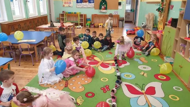 Sale w magiczny sposób „zamieniły się” w tajemnicze miejsca, a nastrojowa muzyka wprowadziła nas w świat magii. Dzięki zabawie w przekłuwanie baloników dowiedzieliśmy się, kim zostaniemy jak będziemy dorośli - okazało się, że będą wśród nas dyrektorzy, nauczyciele, rolnicy czy aktorzy.