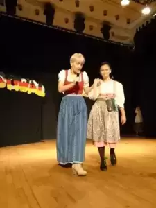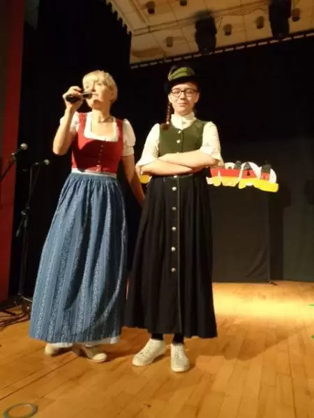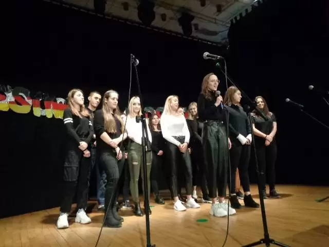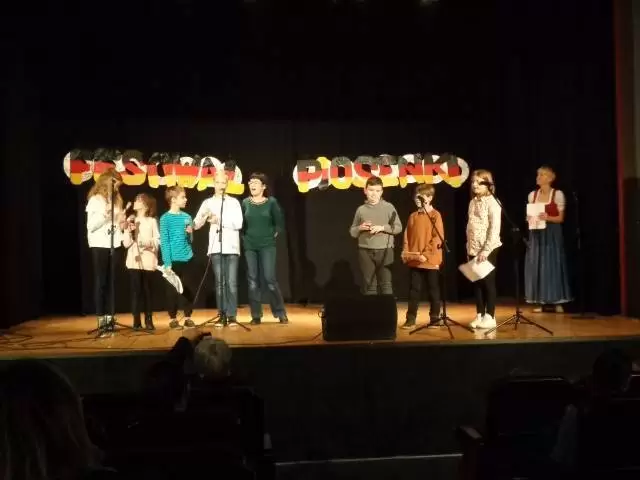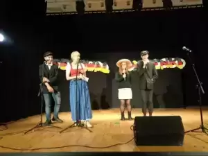 Koncert rozpoczął się od powitania przez panią Lidię Walerych oraz pomysłodawczynię imprezy Renatę Kopacką. Pierwsze na scenie pojawiły się przedszkolaki z grupy „Kangurków” , które rozbawiły publiczność piosenkami w języku angielskim, przygotowanymi pod kierunkiem pani Moniki Ciszewskiej. Ta sama lektorka przygotowała grupę uczniów ze SP, które zaprezentowały angielski repertuar. Następnie wystąpili uczniowie SOSW w repertuarze niemieckim, przygotowani przez panią Renatę oraz uczniowie klas młodszych pod kierunkiem pani Ewy. Również członkowie Szkolnego Koła Języka Niemieckiego zaprezentowali swoje talenty. Po czym pani Renata zaoferowała wraz z uczniami pokaz mody bawarskiej.