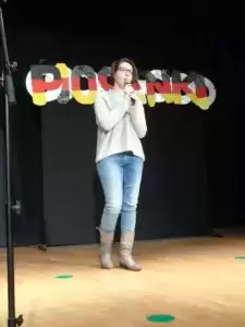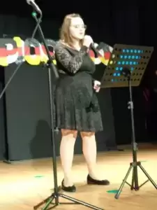 Spotkanie językowych popularyzatorów zakończył występ Kasi z Warsztatów Terapeutycznych, która wcieliła się w rolę Tiny Turner i wprowadziła słuchaczy w dobry nastrój.