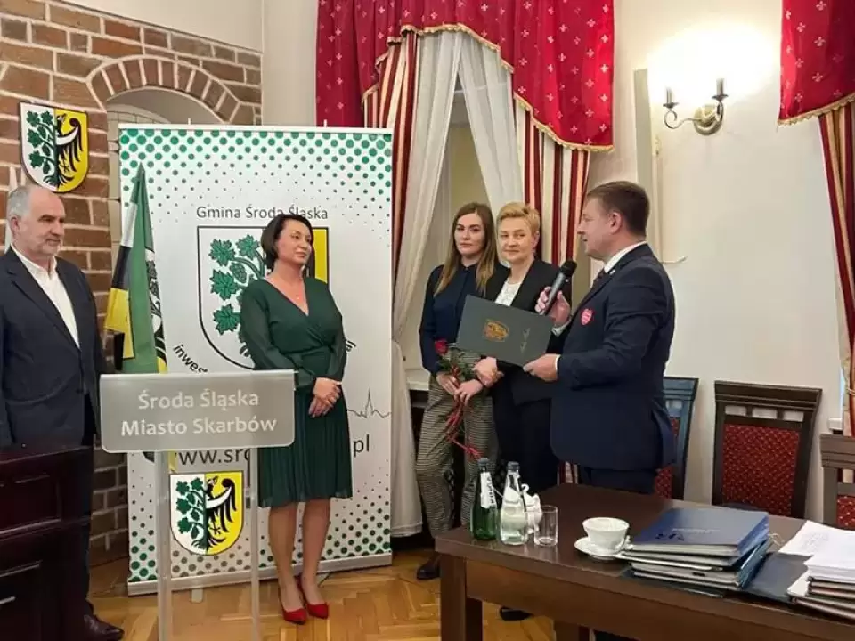 Podczas sesji 25 stycznia br. burmistrz Środy Śląskiej Adam Ruciński uroczyście wręczył akt nadania stopnia awansu zawodowego nauczycielce Przedszkola Publicznego w Szczepanowie Katarzynie Pałasiewicz.