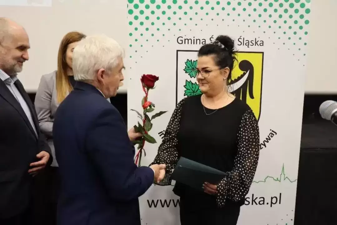 Pani Marta Kocimska-Zawisza złożyła uroczyste ślubowanie nauczyciela mianowanego i otrzymała gratulacje z rąk burmistrza Adama Rucińskiego, przewodniczącego Rady Miejskiej Jerzego Krycińskiego oraz dyrektora Zespołu Placówek Oświatowych Krzysztofa Perygi.
