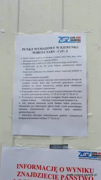 Od 27 października w Środzie Śląskiej przy ul. Legnickiej 25 swoją działalność rozpoczął zewnętrzny punkt pobrań materiału biologicznego do przeprowadzenia testu na obecność wirusa SARS-CoV-2. Na jego otwarcie w tym dniu czekało ok. 30 osób, do punktu nadal przychodzi duża liczba zainteresowanych swoim stanem zdrowia. Od jutra zmienia on nieco formułę działania.