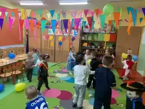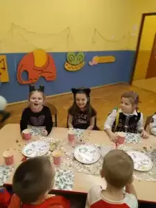 Wystrój sal wprowadzał w radosny nastrój oraz zachęcał wszystkich do wesołej zabawy. Podczas pląsów robiło się kolorowo, barwnie i wesoło. Nie zabrakło także słodkiego poczęstunku.