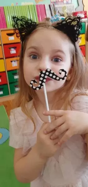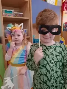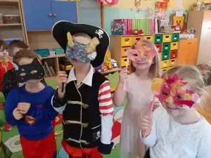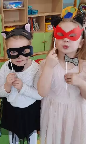Dzieci wykonały również prace plastyczne w tym dniu – kolorowały, wyklejały i ozdabiały maski karnawałowe. Były też kolorowe rekwizyty do fotobudki, maski, śmieszne okulary i brokat do ozdoby. Jak karnawał to karnawał!