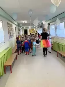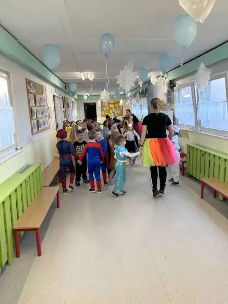 Na parkiecie pojawiły się piękne księżniczki, dzielni rycerze, superbohaterowie, zwierzątka i wiele innych barwnych postaci. Wspaniałą atmosferę stworzyły kolorowe dekoracje oraz wesoła muzyka, która porwała wszystkich do tańca.