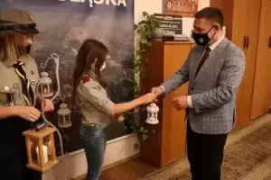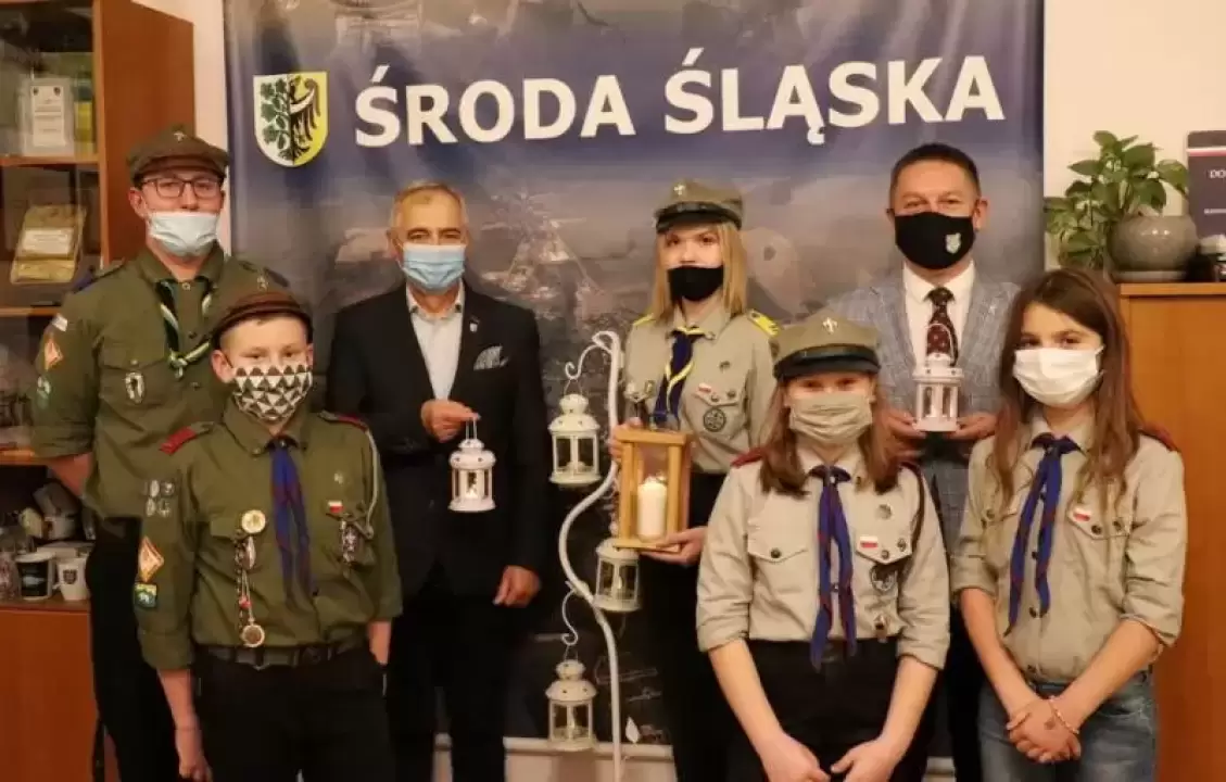 Przedstawicieli średzkiego samorządu z lampionem z płonącą w środku świecą, będącą symbolem Światła Pokoju odwiedzili harcerze z 13. Grunwaldzkiej Średzkiej Drużyny Harcerskiej „KRZESIWO” ORAZ 77. Grunwaldzkiej Średzkiej Drużyny Starszoharcerskiej „BUSOLA”: Szymon Bartoch, Emilia Barczyk, Maja Lachotkiewicz i Zofia Malczewska.