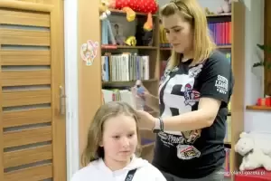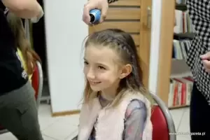 Kolejnym punktem spotkania było długo wyczekiwane przez dziewczynki studio wizażu. Bibliotekarki tego dnia spełniły marzenia wielu z nich farbując im włosy na wiele odważnych kolorów oraz wykonując manicure.