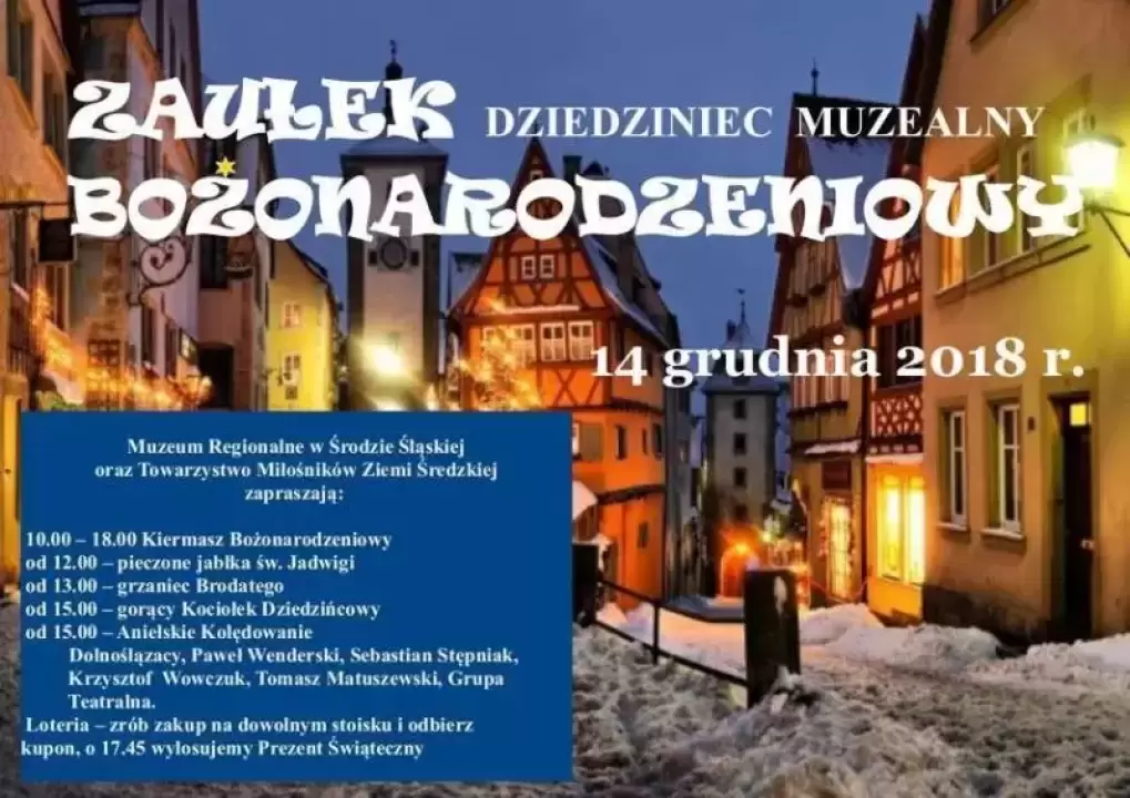 Muzeum Regionalne w Środzie Śląskiej oraz Towarzystwo Miłośników Ziemi Średzkiej zapraszają do Zaułku Bożonarodzeniowego na dziedzińcu muzealnym.