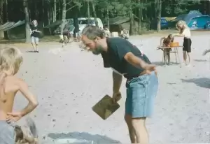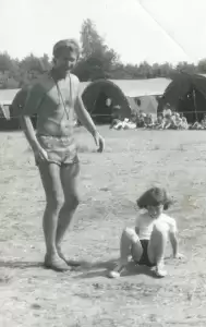 Pragnę krótko wyjaśnić, że moi rodzice, posiadając wyższe stopnie harcerskie, byli często opiekunami drużyn, tata odpowiadał za zajęcia sportowe, a mama pełniła rolę pielęgniarki. Ja byłem tzw. dzieckiem kadry, czyli osobą, którą specjalnie nie obowiązywał rygor harcerski. Dzięki temu, mogłem spokojnie przyglądać się z boku, jak funkcjonuje obóz. Po raz pierwszy hufiec ZHP Środa Śląska gościł w Mrzeżynie w roku 1979, moja przygoda zaczęła się w roku 1984, co zostało uwiecznione na jednym ze zdjęć dołączonych do tego artykułu.