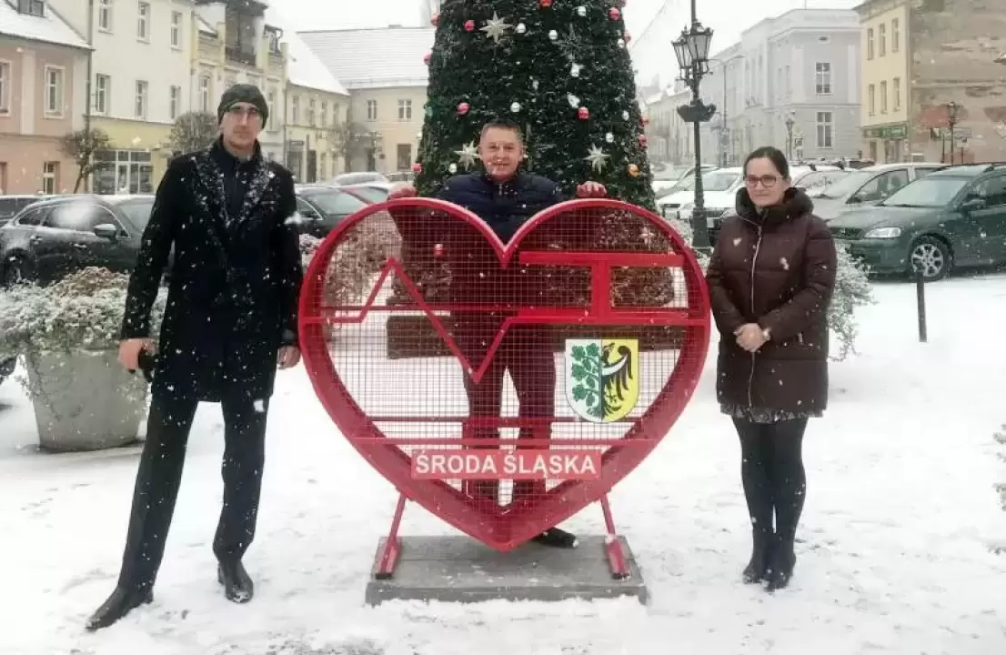 Serduszko z herbem Gminy Środa Śląska stanęło w wyjątkowym miejscu – między Pomnikiem Rolanda, który jest symbolem miasta, a choinką zwiastującą zbliżające się Święta. Partnerem tej akcji jest średzki oddział PCK z panią Kierownik Mariolą Szczepan.