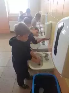 W tym dniu przedszkolaki: słuchały opowiadań o myciu rąk, odbyła się demonstracja z użyciem farb oraz rękawic aby uzmysłowić dzieciom jak ważne jest prawidłowe mycie rąk, wykonywały doświadczenia z użyciem wody, pieprzu oraz środka myjącego, stworzyły wspólny plakat zachęcający do higienicznej postawy oraz odrysowywały, wycinały i kolorowały swoje dłonie.