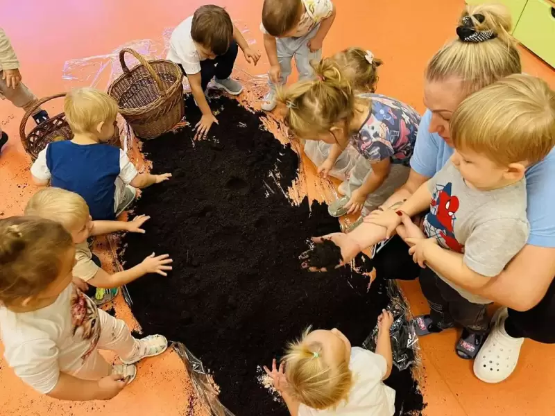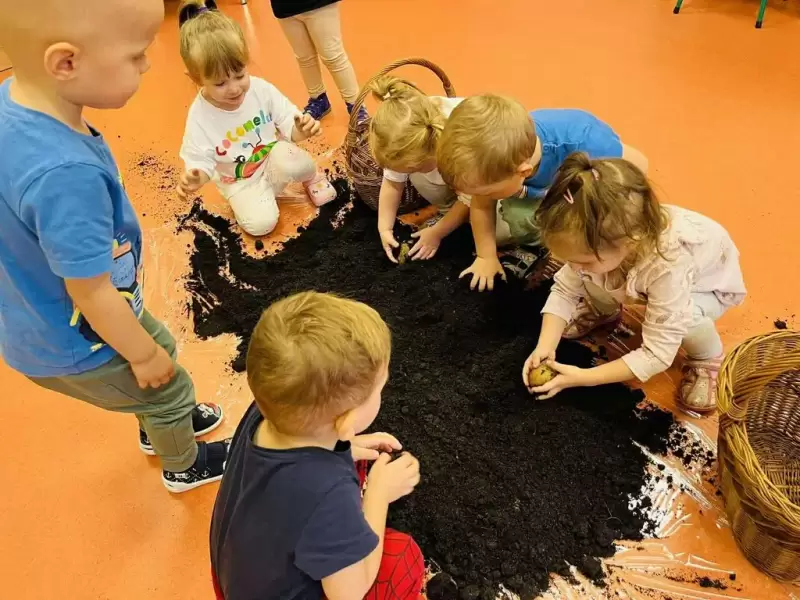 Kolejną atrakcją dla maluszków była zabawa „Wykopki”, w trakcie której dzieci poszukiwały ziemniaków ukrytych w ziemi.