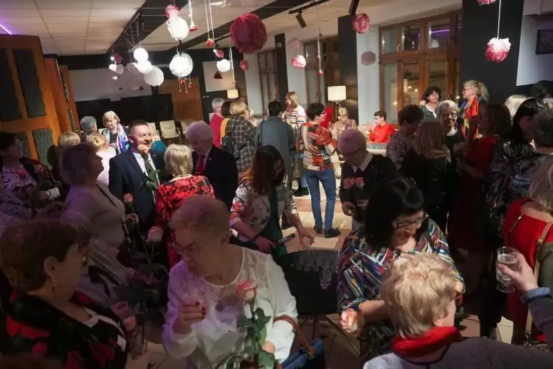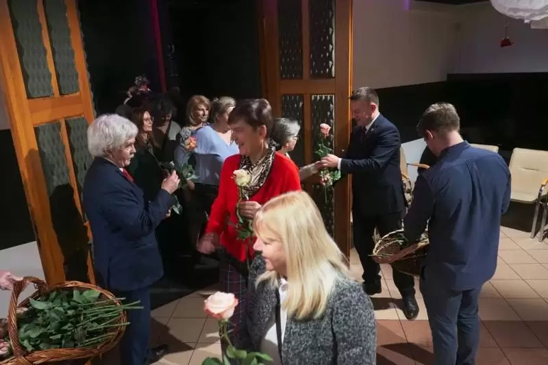 Po muzycznej uczcie, Panie otrzymały symboliczne róże z rąk burmistrza Adama Rucińskiego i przewodniczącego Rady Miejskiej Jerzego Krycińskiego, którzy na scenie osobiście złożyli Paniom życzenia z okazji ich święta. Wieczór zakończył się miłymi pogawędkami przy słodkim poczęstunku we foyer DK.
