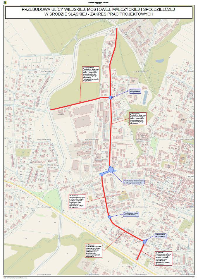Rusza przygotowanie dokumentacji projektowej dla kompleksowej modernizacji czterech ważnych ulic w Środzie Śląskiej. Projekt obejmie ulice: Wiejską, Mostową, Malczycką i Spółdzielczą o łącznej długości ponad 2,1 km, a także przebudowę ciągów pieszo-rowerowych, mostu na ul. Mostowej oraz budowę ronda na skrzyżowaniu ulic Legnickiej i Malczyckiej.