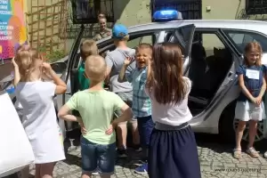 Kiedy jednak jury podliczało punkty, uczestnicy wspólnie z funkcjonariuszem policji udali się na parking, gdzie do ich dyspozycji był radiowóz. Możliwość siedzenia za kierownicą pojazdu, włączanie sygnałów świetlnych i dźwiękowych, sprawiły dzieciakom ogromną radość.
