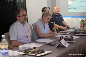 W jury, które nie miało trudnej pracy, ponieważ odpowiedzi uczestników były prawidłowe i dokładnie sprecyzowane, zasiedli: pracownica Urzędu Miejskiego Bożena Lenartowicz, radny Paweł Rosenbeiger, rzeczniczka Komendy Powiatowej Policji Marta Stefanowska, komendant Straży Miejskiej Gustaw Dobosz oraz dyrektor Zespołu Obsługi Placówek Oświatowych Krzysztof Peryga. Siostra Małgorzata podziękowała dyrektorowi za pozytywne przyjęcie inicjatywy organizowania konkursu oraz natychmiastową pomoc i życzliwość, po czym ogłosiła rozpoczęcie konkursu.