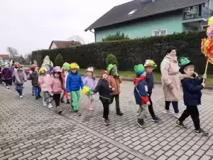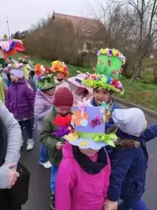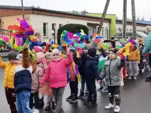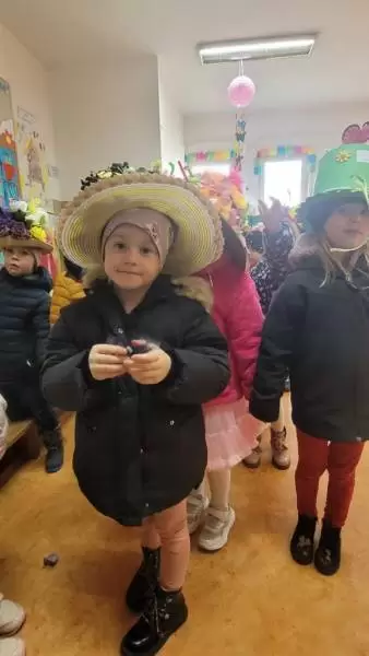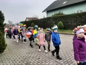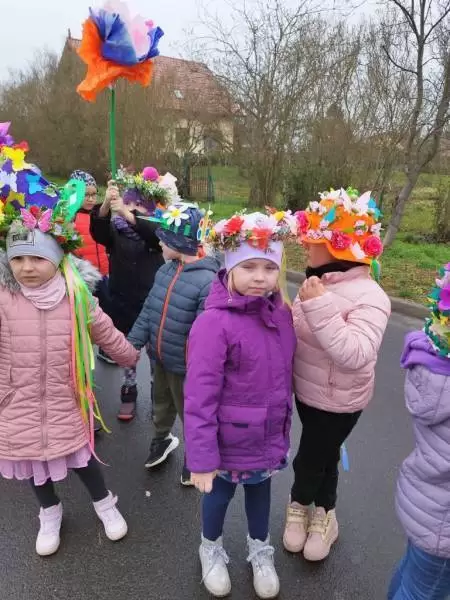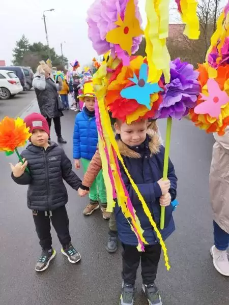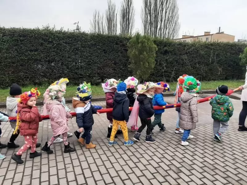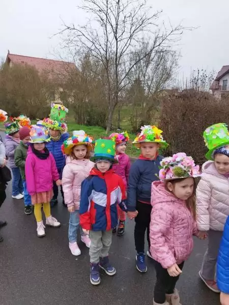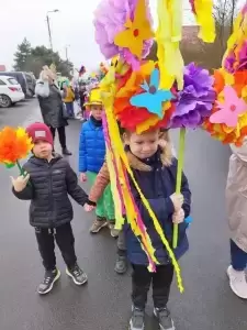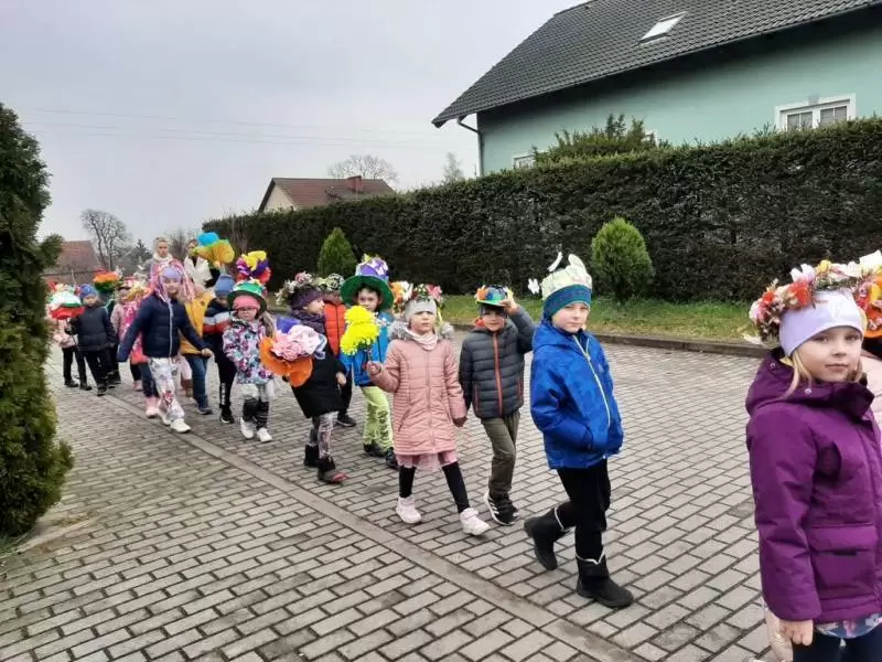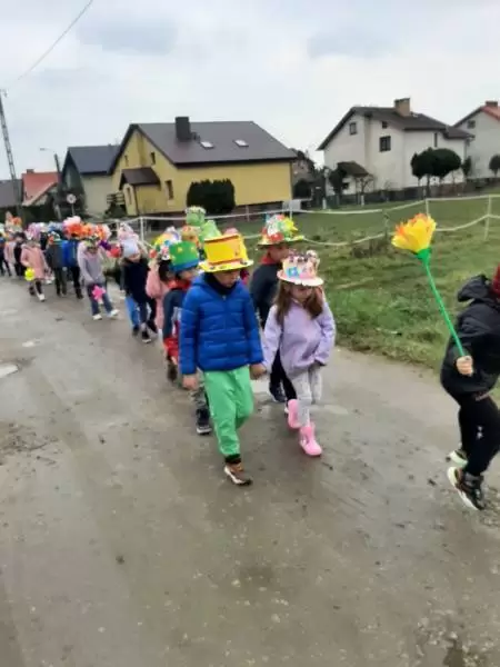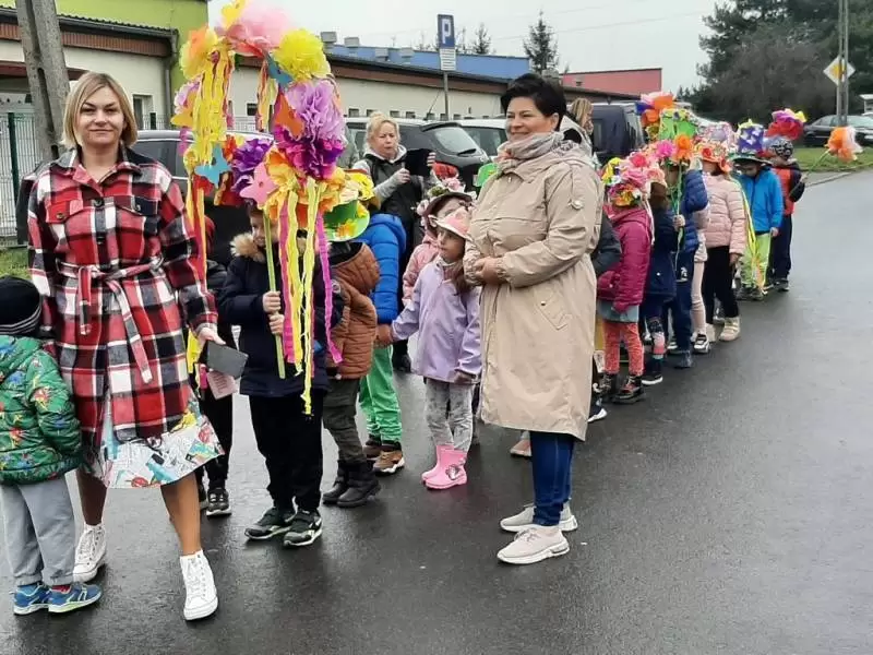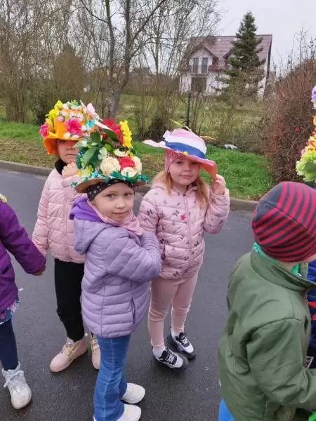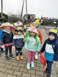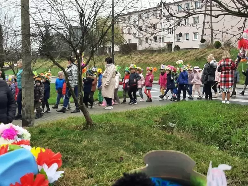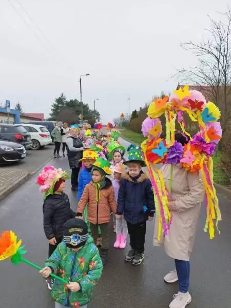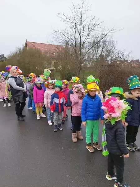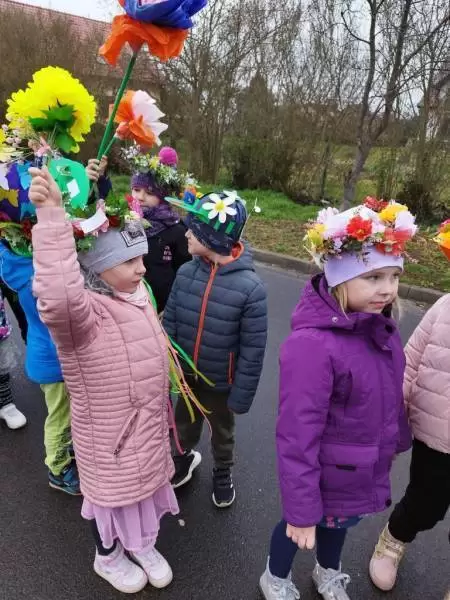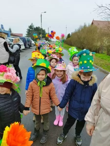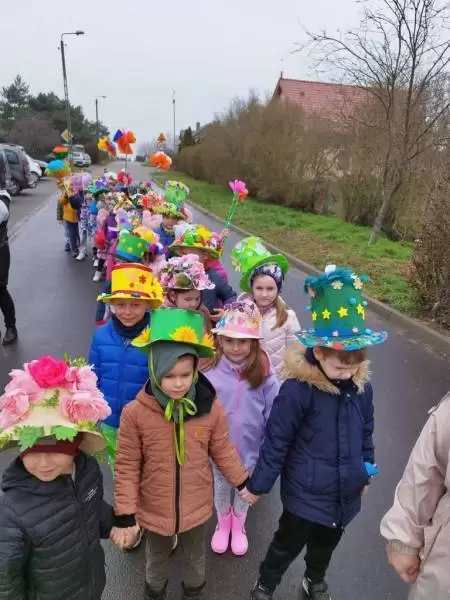 Mimo wielu atrakcji, najbardziej oczekiwaną chwilą był pokaz mody wiosennej. Dzieci wyruszyły w kolorowym i głośnym pochodzie, podczas którego prezentowały wiosenne kapelusze i wianki, które wcześniej przygotowały z Rodzicami w domu. Było bardzo kolorowo i radośnie, dzieci śpiewały i machały kolorowymi kwiatami. Wszyscy cieszyli się z nadejścia Wiosny i bez żalu pożegnali Zimę.