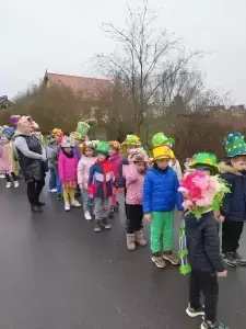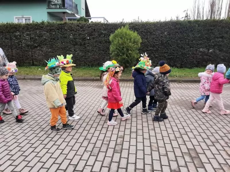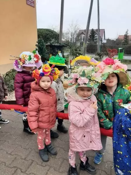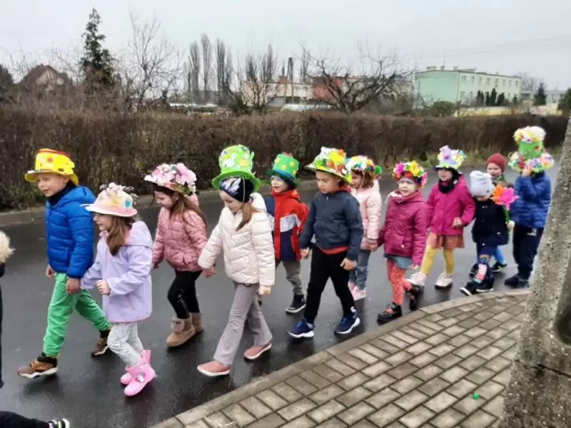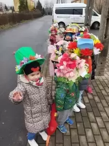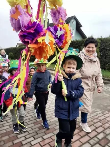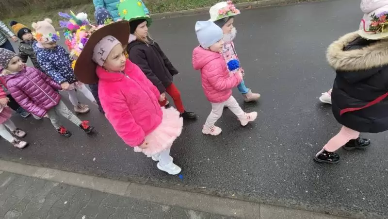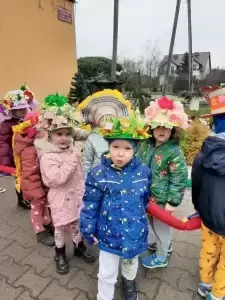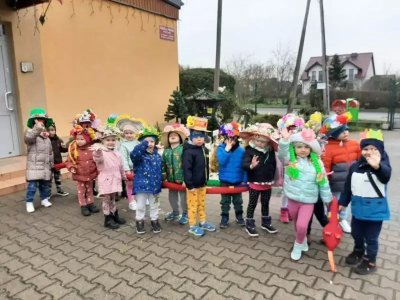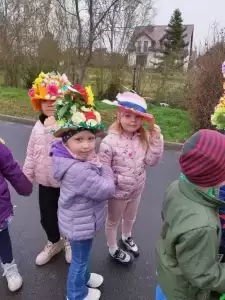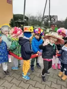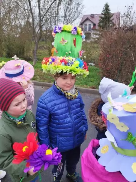Dziękujemy Rodzicom za wykonanie z dziećmi pięknych kapeluszy. Każdy kapelusz czy wianek był wyjątkowy nie tylko przez kolory czy ozdoby, był wyjątkowy, bo zrobiony wspólnie, razem z dziećmi. Przedszkolaki były dumne i zadowolone. Uśmiech i szczęście podczas pochodu to najlepszy dowód na to, że takie akcje mają sens i przynoszą wiele radości dzieciom!