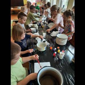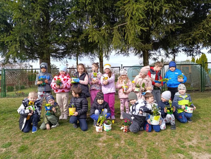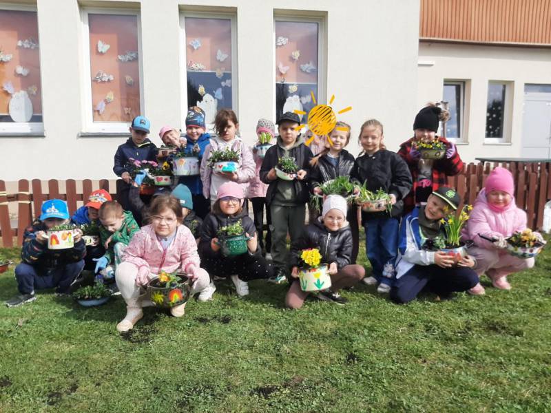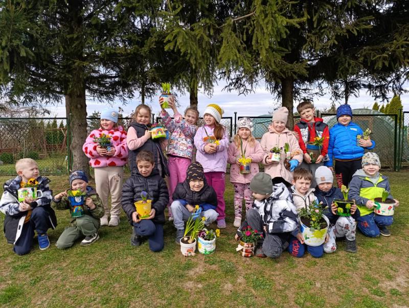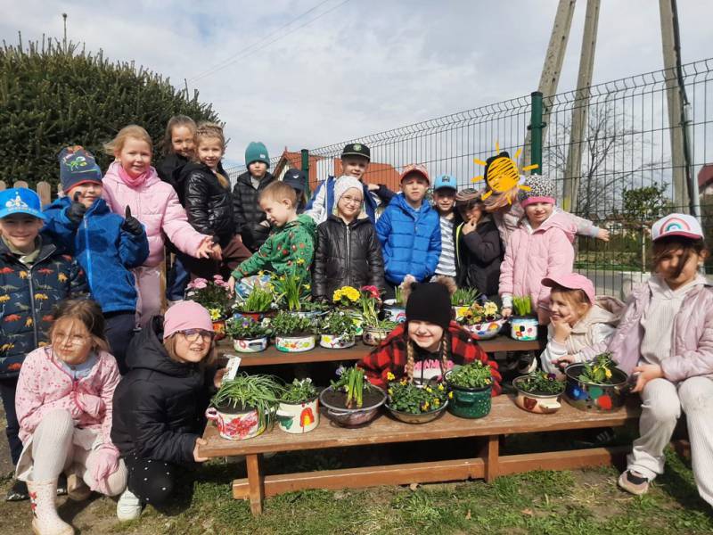 W Przedszkolu Publicznym w Ciechowie przygotowania do pożegnania zimy zaczęły się już dużo wcześniej. Zmieniła się dekoracja, pojawiło się dużo prac plastycznych, oraz zajęć w ogrodzie. Dzieci malowały doniczki, garnki, aby później posadzić w nich wiosenne kwiaty.