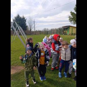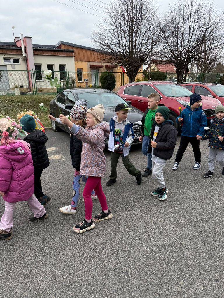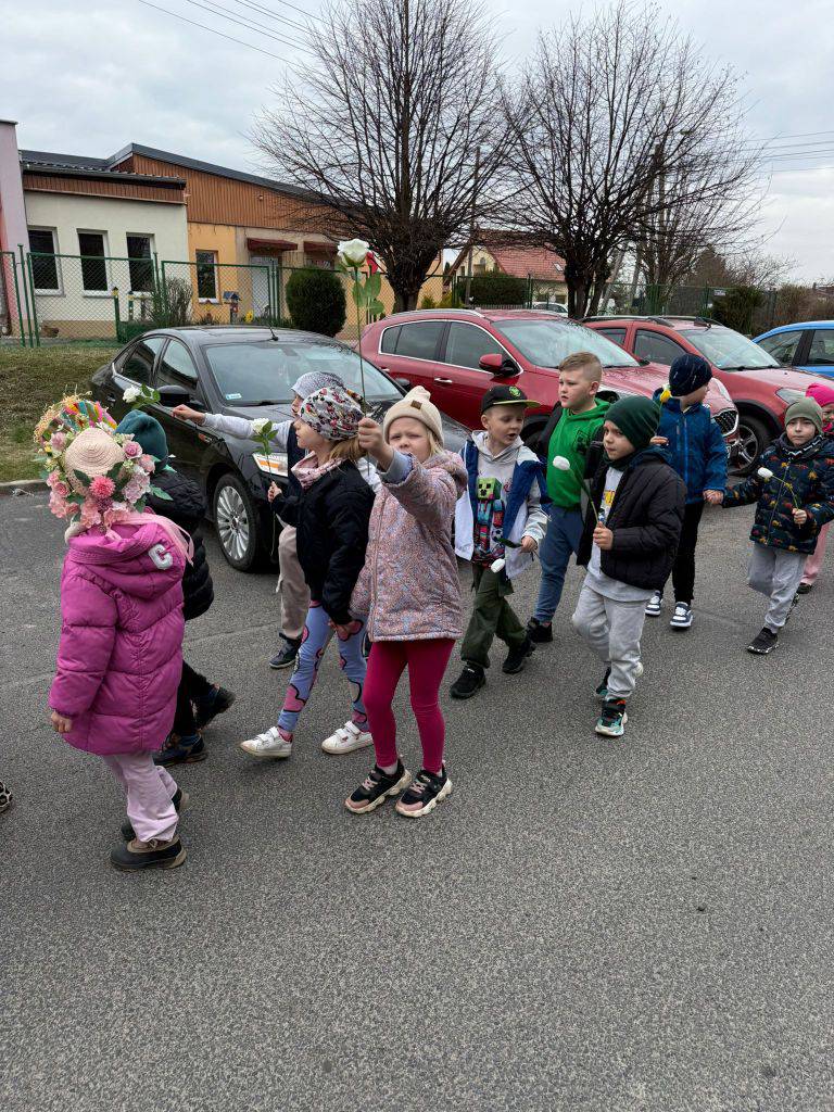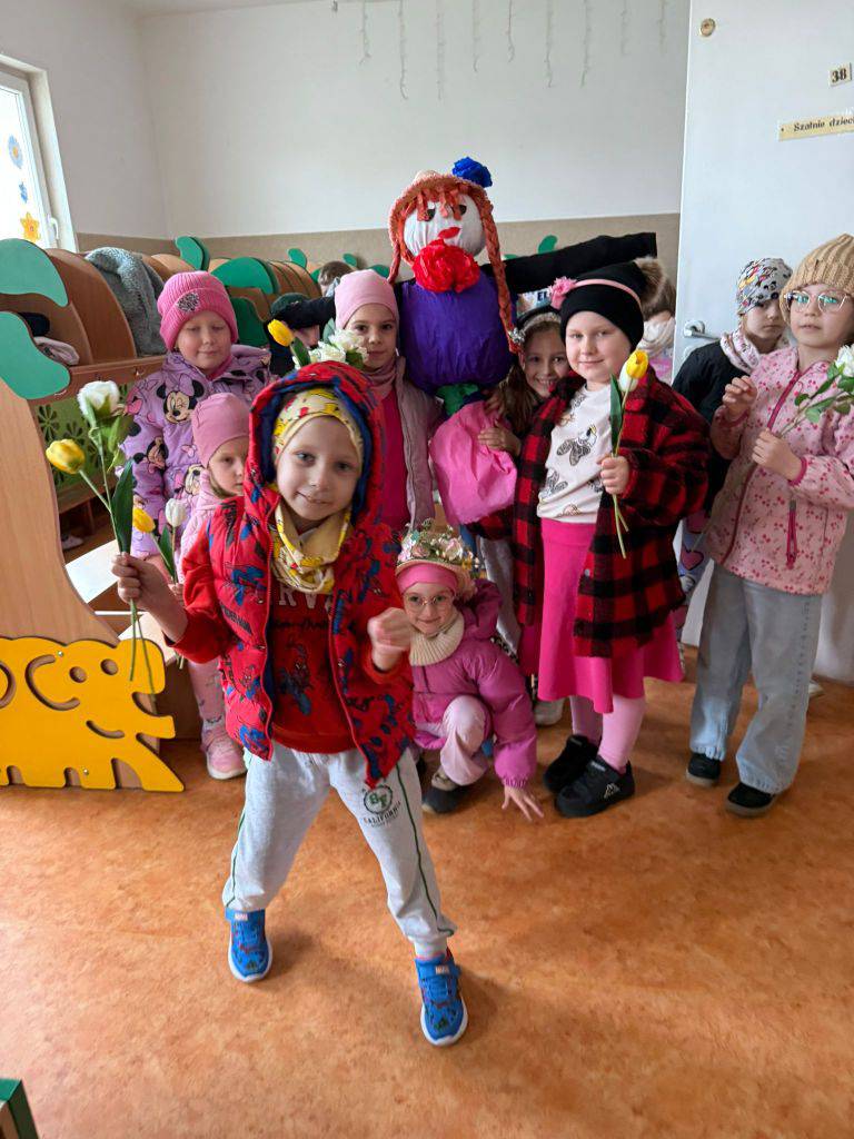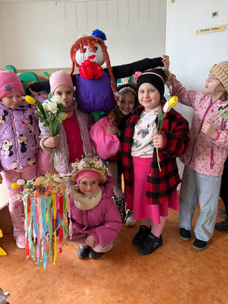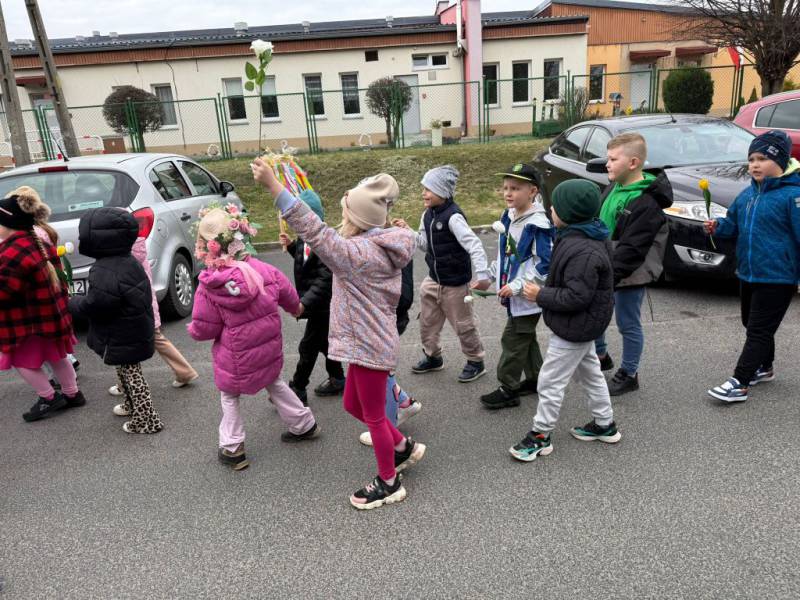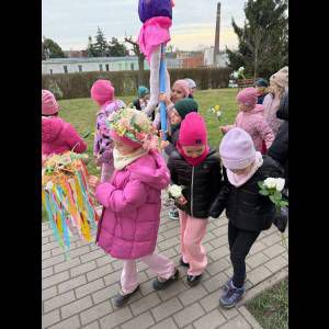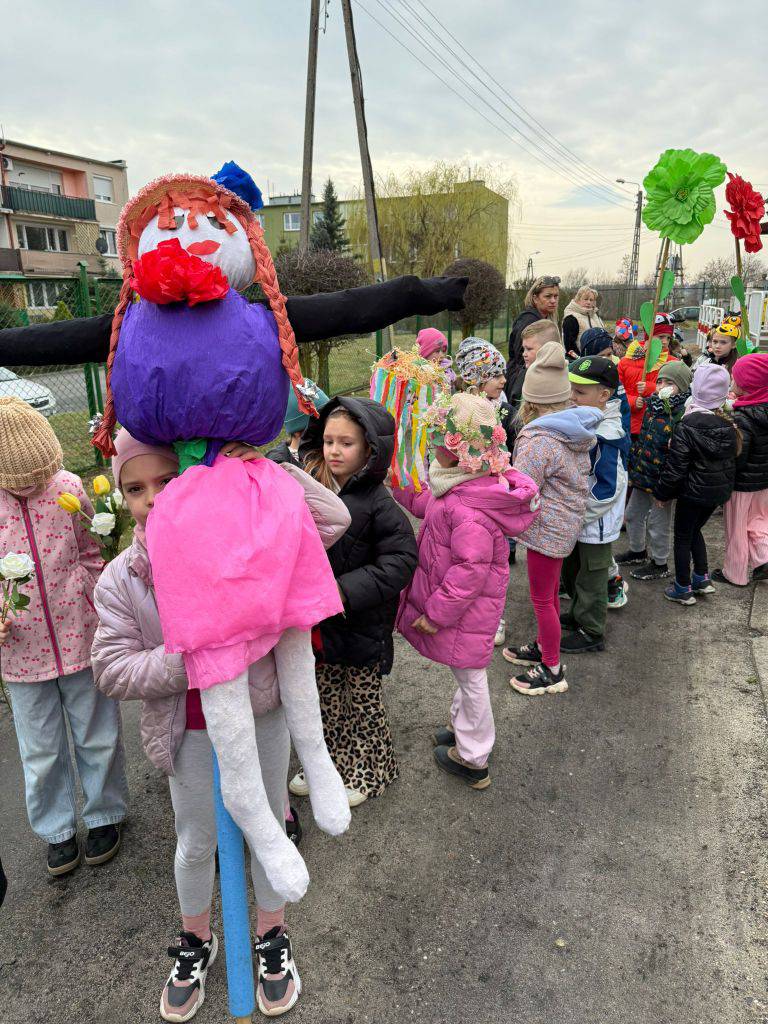 Tradycyjnie wszystkie dzieci, wzięły udział w obrzędzie pożegnania zimy i powitania wiosny. Ubrana w kolorową sukienkę ozdobioną kwiatami – Marzanna wraz z dziećmi wyruszyła na wiosenny spacer. Dzieci z radością maszerowały w wiosennym pochodzie, z okrzykami witającymi Wiosnę!