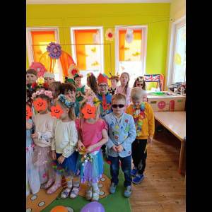 Dziękujemy Rodzicom za wykonanie z dziećmi pięknych strojów wiosennych. Każde przebranie było wyjątkowe, nie tylko przez kolor czy ozdobę, było wyjątkowe, bo zrobione wspólnie, razem z dziećmi. Dzieci były dumne i zadowolone. Uśmiech i szczęście podczas pochodu i wszystkich atrakcji to najlepszy dowód na to, że takie akcje mają sens i przynoszą wiele radości dzieciom! Więc WITAMY Wiosnę!