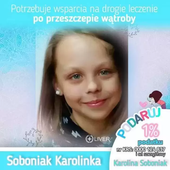 Karolina Soboniak z Lipnicy w gminie Środa Śląska, to podopieczna fundacji Pomoc Chorym Dzieciom LIVER. Ponad rok temu, dokładnie 30 lipca 2017 r. otrzymała nową wątrobę. Odtąd każdego dnia przyjmuje kilkanaście różnych lekarstw.