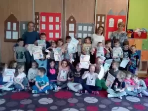 Nasz gość przeczytał także przedszkolakom bajkę, a na zakończenie wręczył każdemu piękny dyplom dla dzielnego pacjenta.